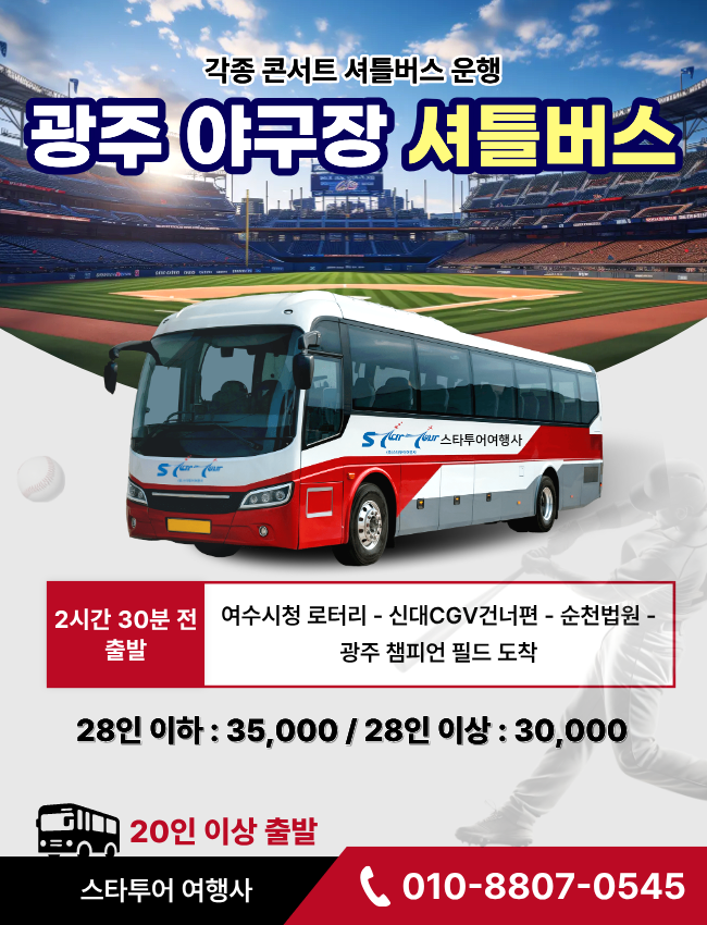 광주 챔피언스필드 셔틀버스! 여수스타투어와 함께 편안하게 즐겨요!